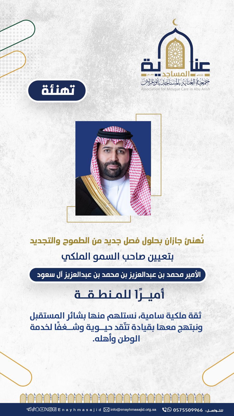 نهنئ #جازان بحلول فصل جديد من الطموح والتجديد بتعيين صاحب السمو الملكي الأمير محمد بن عبدالعزيز بن محمد بن
